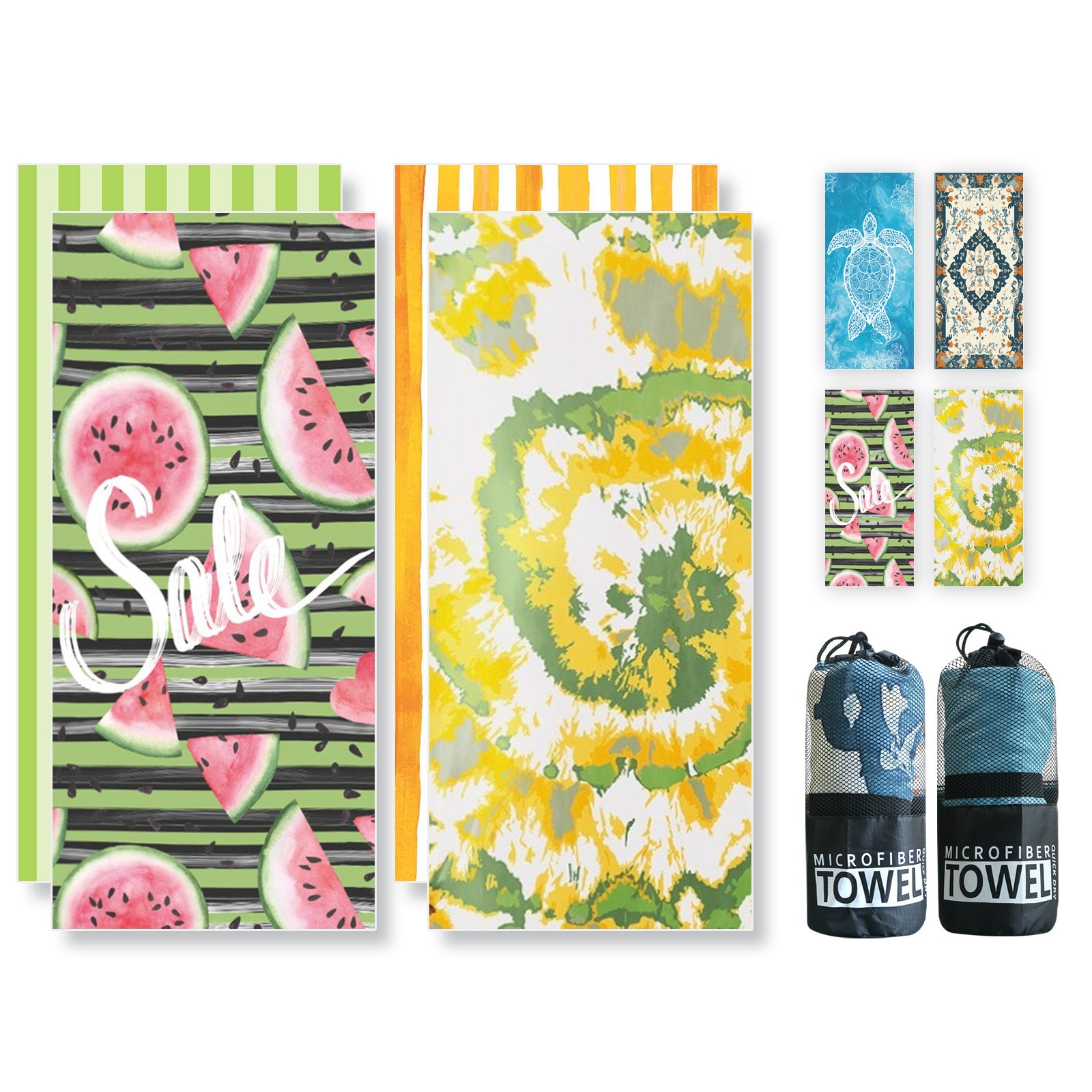 Beach Towels Oversized - 2 Pack 78'' X 35''(200 x 90 cm) 250 GSM Microfiber Beach Towels for Adults (Watermelon and Tie-dye)
