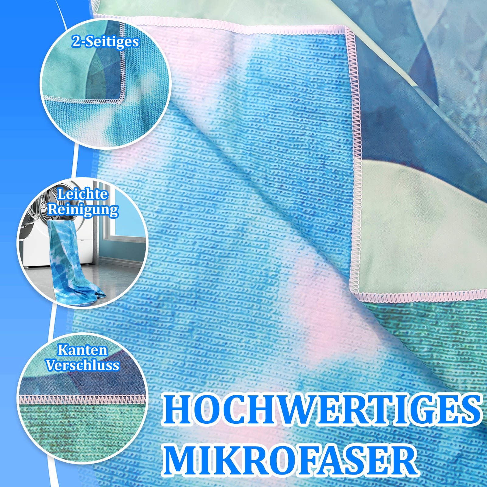 HIGH QUALITY: Microfibre beach towel XXL is made of high-quality polyester and nylon, is non-slip and skin-friendly. The fibres do not fall out easily. It also has an edge closure technique that makes the bath towel durable and keeps its shape.